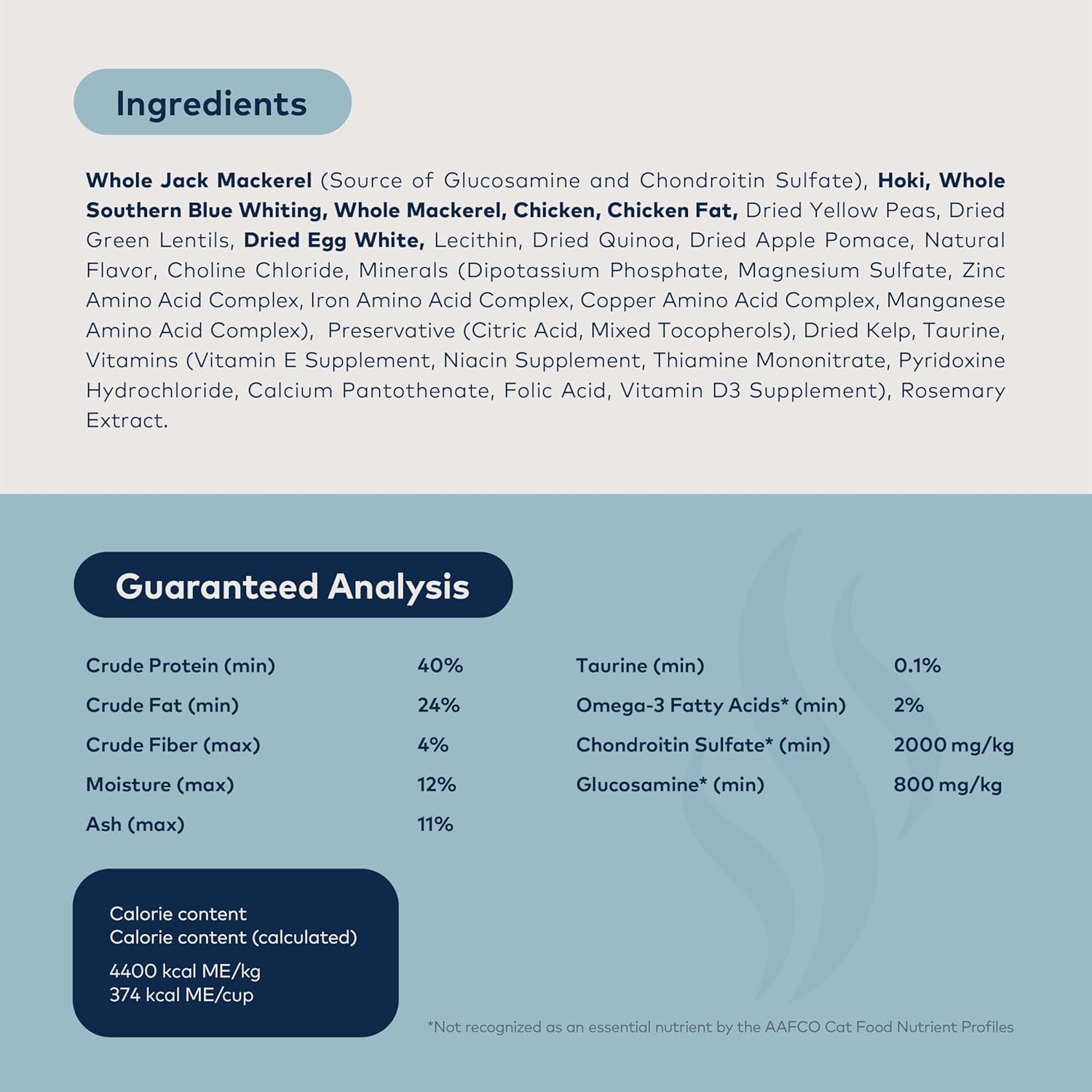 Crafted from ethically sourced, raw, wild-caught fish including whole Jack Mackerel, whole Southern Blue Whiting, whole Mackerel and Hoki from the pristine oceans surrounding New Zealand for a rich source of Omega-3 fatty acids that support overall skin health and a shiny coat. Delicately micro-steamed with added cage-free chicken for optimum texture then gently air-dried via our innovative two-step Z-MicroSteam™ technology to ensure optimum nourishment and palatability. Provides a first step into premium nutrition for all cats to enjoy.