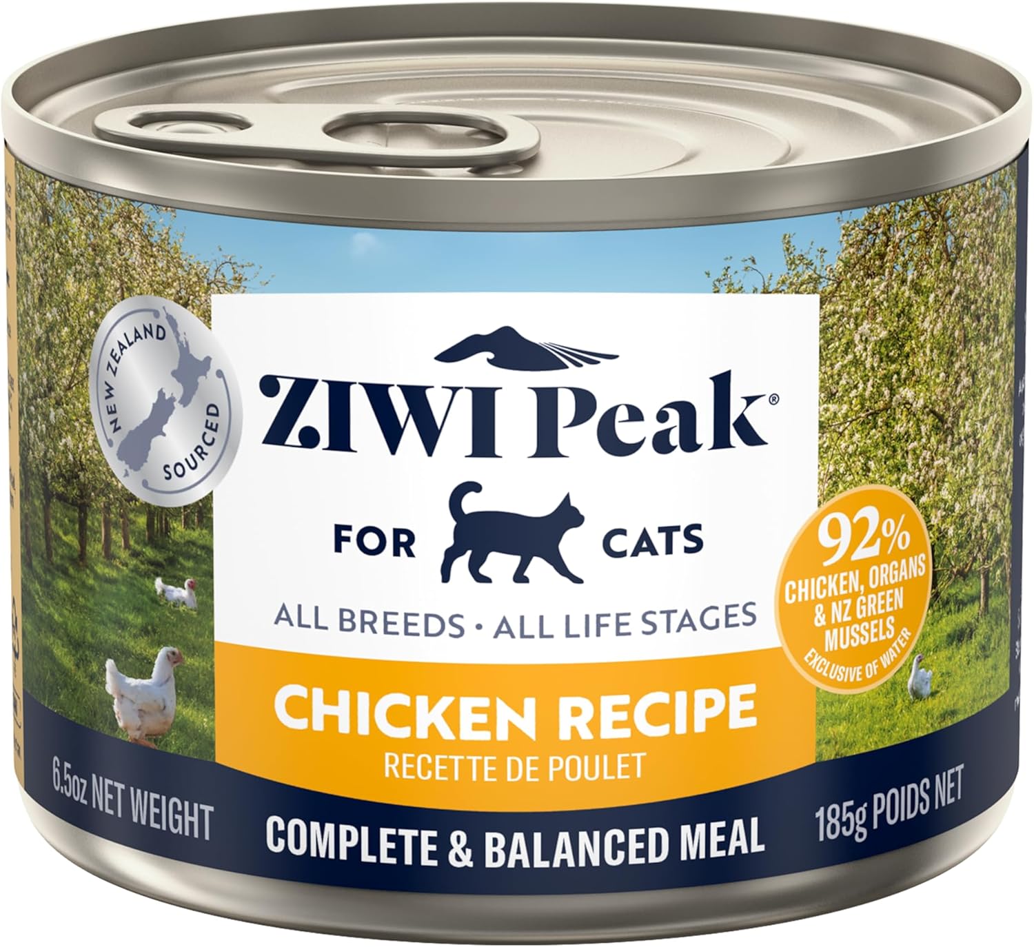 The ZIWI Difference: We believe a holistic pet food starts with only the best natural ingredients. Rooted in New Zealand culture, our farmers and fisherman believe wholeheartedly in their role as kaitiaki; or being guardians of the land and sea. Ethical sourcing isn’t just a standard—it’s our way of life. Perfect for carnivores, our PeakPrey recipes are rich in meat and organs in authentic ratios, free from unnecessary carbohydrates. Proudly made by passionate Kiwis, nothing delights us more than crafting recipes that bring joy and peace of mind to pets and their guardians. CHICKEN RECIPE: A unique moisture rich recipe featuring free-range chicken, ethically raised according to New Zealand’s strict animal welfare standards, crafted to entice even the most selective cats. Serve as a topper or complete meal. Your cat or kitten is sure to enjoy each and every bite. FAQs Can ZIWI Peak be fed as a topper or mixed with another food? There’s no wrong way to feed ZIWI, it works great as a complete meal or as a topper for a nutritional boost on your existing food. Why is there sometimes variability in my ZIWI Peak food? ZIWI Peak uses natural ingredients, handcrafted in small batches, featuring high inclusions of meat and organs and excludes artificial fillers, dyes and preservatives. This, in combination other natural factors such as age and seasonality of the ingredients we use, often results in variability of shape, size, color, texture and odor. This variation is perfectly normal and is an indicator as to how natural the food really is! How do I transition my cat to Ziwi? ZIWI Peak is nutrient dense. A little goes a long way, don’t be surprised if you feed less! Introduce a new recipe slowly over 6-8 days, gradually increasing the amount of the new recipe while decreasing the old, until you are fully transitioned. Please refer to our transition guide on the packaging. Can I rotate my cat through different Ziwi recipes? We recommend a gradual transition between proteins, to minimize the potential for digestive upset. Please refer to our transition guide on the packaging.